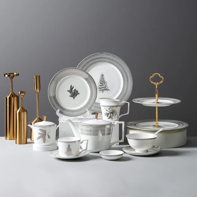 A serene blend of winter botanicals and refined monochrome elegance.